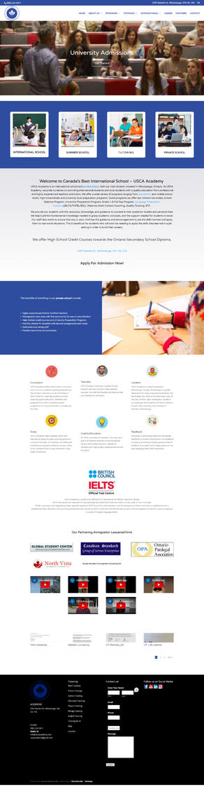 USCA Academy is a leading international school and private school, situated in Mississauga, Great toronto area, Canada. At USCA Academy, we pride ourselves on providing international students and local students with a quality education . After graduation, Most of our students got accepted by University of Toronto, University of Waterloo, Western University, Queens University, Mcmaster University, University of Guelph, York University, Ryerson University, and so on. Our Students are also accepted by Universities/Colleges in US and UK, Australia, Newzeland.The School offer a wide variety of programs: Ontario Secondary School diploma Program(grade 9-12); Elementary School Program (Grade 1-8) University Preparation Program(Grade 12); Language Preparation Coaching(IELTS/TOEFL/ESL); Waterloo Math Contest Coaching;Some features of USCA Academy: High University Acceptance Rate